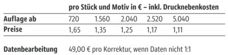 Preisliste SUPER-MAXI-Schokoladentafel mit Logo
