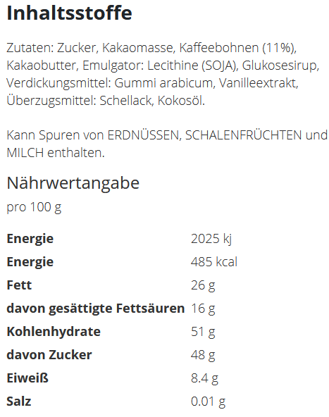 Eine süße, belebende Köstlichkeit: die herbe Kaffeebohne ummantelt mit Zartbitterschokolade.Inhalt: 2 Stück ca. 4gFüllung: Schoko-KaffeebohneGeschmack: Zartbitterschokolade mit KaffeeFormat: 60 x 72 mmFolie: weiße FolieDruck: 4c EuroskalaVerpackungseinheit: 500 StückHaltbarkeit: ca. 12 Monate bei sachgerechter LagerungLieferzeit: ca. 15 Arbeitstage nach DruckfreigabeMindestbestellmenge: 3.000 Stück