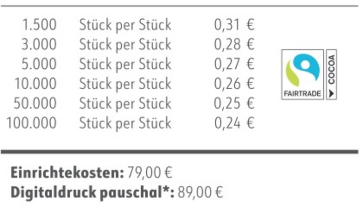 Preisliste Werbe-Schokoladen-Herz 8,5g mit Logo Details