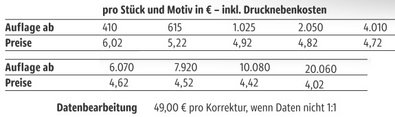 Preisliste Personalisierte M&M´s Schokolinsen in Klarsichtbox mit Logo