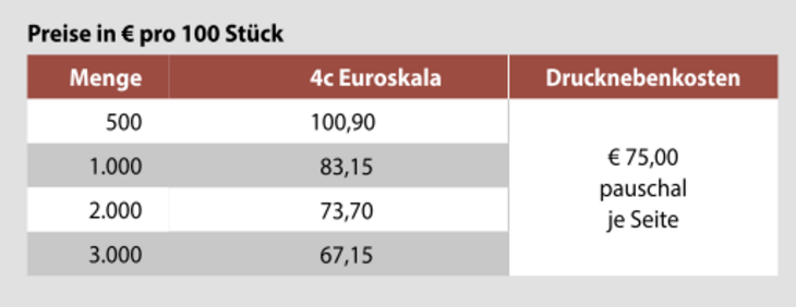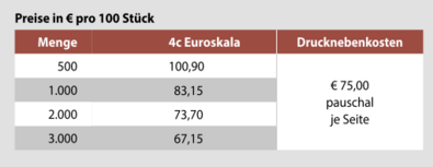 Preisliste Faltkarte mit Logo Details