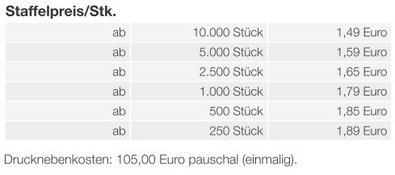 Preisliste Werbe Fruchtgummi Paperbox mit Einleger mit Logo