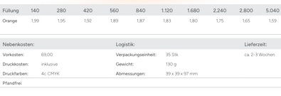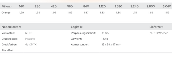 Preisliste (€) Vitamin-Shot Orange mit Logo Details