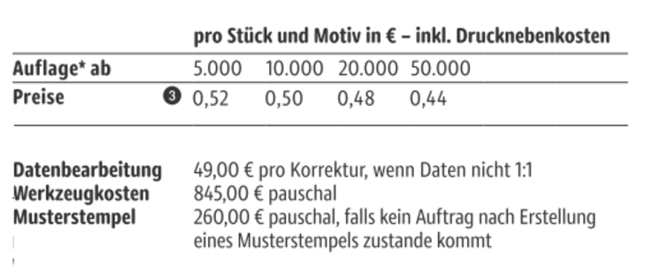 Preisliste Fruchtgummi Individuell in kompostierbarem Werbetütchen 30g mit Logo Details
