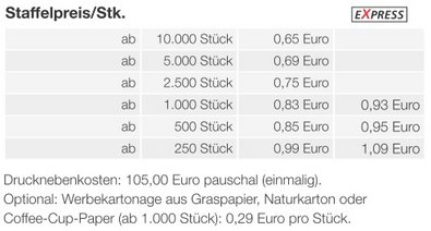 Preisliste Fruchtgummi-Briefchen mit Logo