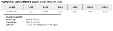 Preisliste Fruchtgummi Standardformen 15g mit Logo Details