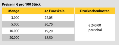 Inhalt: 1 Stück ca. 8g, bunt gemischtUmkarton: 500 TütchenGeschmack: Apfel, Aprikose, Banane, ErdbeereFormat: 48 x 72 mmFolie: weiße oder transparente Folie mit WeißunterlegungDruck: 4c EuroskalaHaltbarkeit: ca. 10-12 Monate bei sachgerechter LagerungLieferzeit: ca. 15 Arbeitstage nach DruckfreigabeMindestbestellmenge: 3.000 Stück Datenbearbeitung: Erstellung oder Überarbeitung (falls Vorlage nicht 1:1 gestellt wird) wird nach Aufwand berechnet