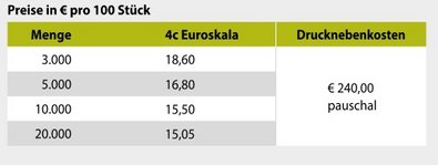 Preisliste Saure Fruchtsaftberries mit Werbedruck Details