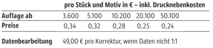 Preisliste Fruchtgummi-Standardformen 20g im kompostierbaren Tütchen mit Logo