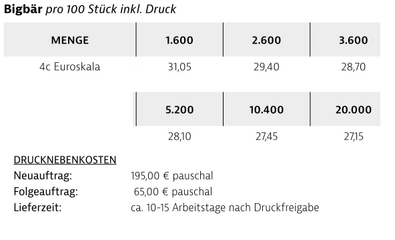 Bunt gemischte, große Gummibärchen einzeln im individuell bedruckbaren Flowpack verpackt. Der Fruchtsaftanteil beträgt 20%.Gewicht: Inhalt 10gVerpackungsmaß: ca. 90 x 45 mm Verpackungseinheit: 200 St. im Karton / 800 St. im UmkartonHaltbarkeit: ca. 12 Monate bei sachgerechter LagerungLieferzeit: ca. 10-15 Arbeitstage nach DruckfreigabeMindestbestellmenge: 1.600 Stück