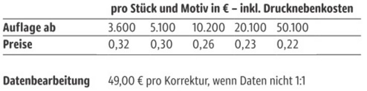 Preisliste Fruchtgummi Standartformen 20g mit Logo