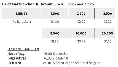 Preisliste Fruchtsaftbärchen 10g mit Logo Details