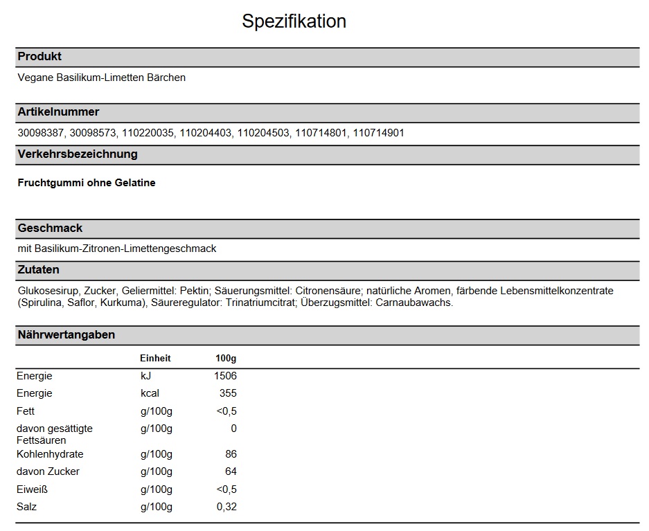 Preisliste Fruchtgummi Vegane Basilikum-Limetten Bärchen 20g im Werbetütchen mit Logo Details