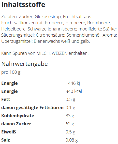 Preisliste Haribo Fruitmania Berry, 12g mit Logo Details