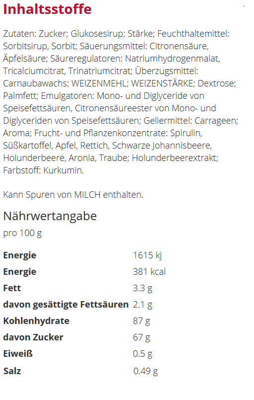 Preisliste Haribo Rainbow Fizz mit Logo