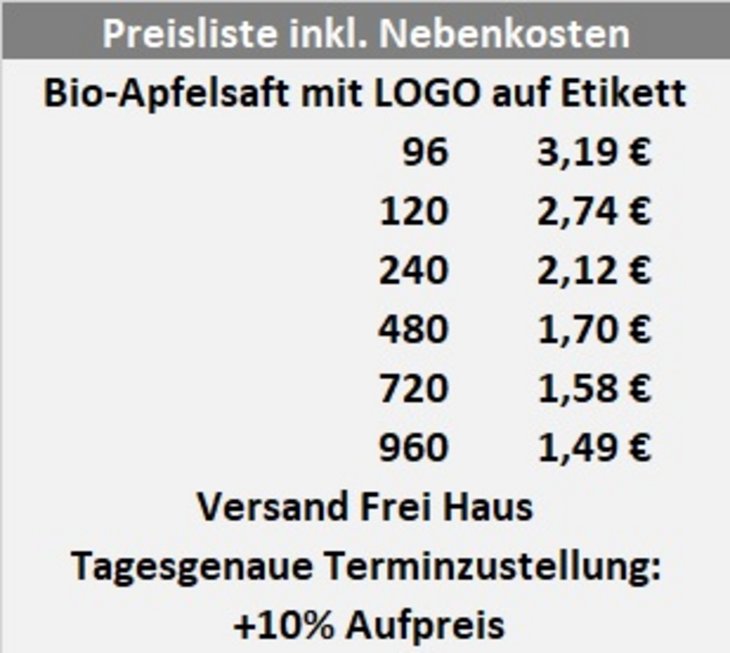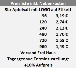 Preisliste Apfelsaft mit Logo Etikett
