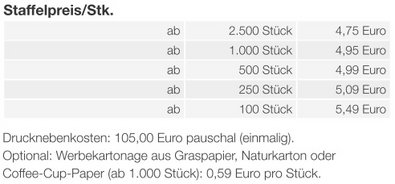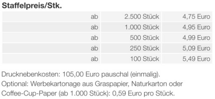 Preisliste Snack-Pack kleine Pause mit Logo Details