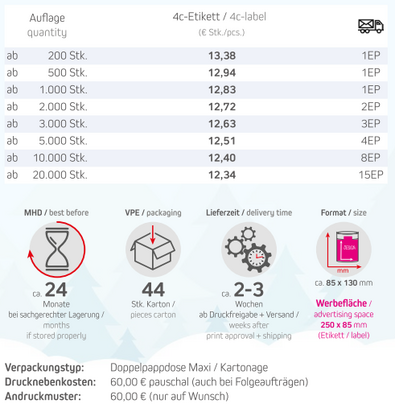 Haltbarkeit: ca. 24 Monate bei sachgerechter Lagerung