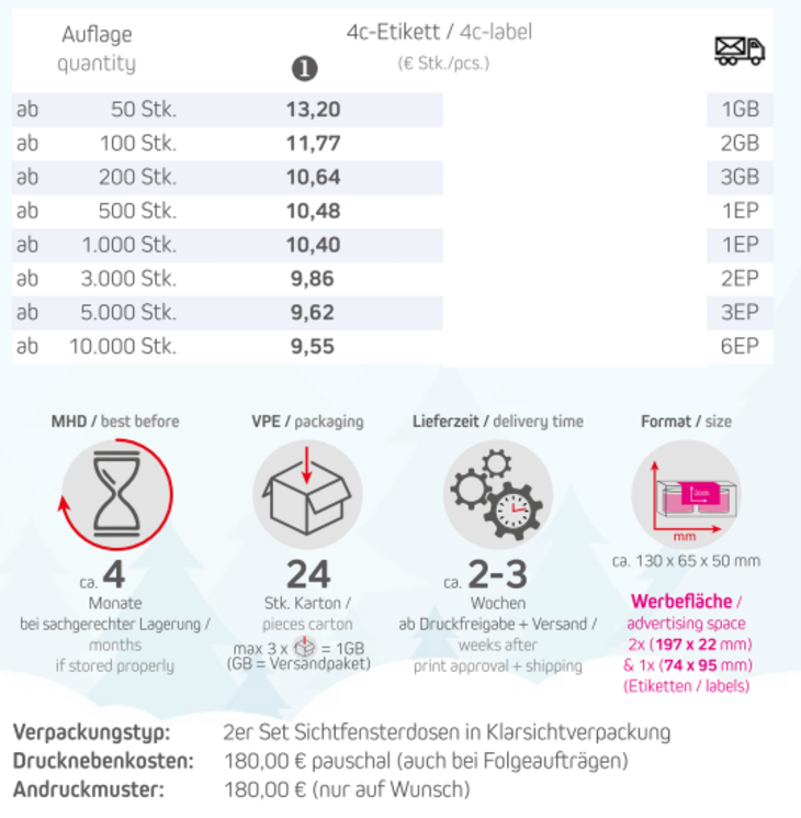 Verpackung: Metalldose Mini mit Sichtfenster im 2er Set in Klarsichtsverpackung