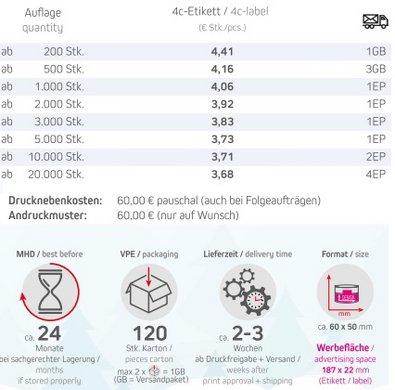Dieser aromatische Früchtetee sorgt für wohlige Wärme an kalten Tagen. Die fruchtige Note von Orangenschalen kombiniert mit einer feinen Schärfe aus Ingwer und Chili macht ihn zum perfekten Begleiter für gemütliche Abende. Ein stimmungsvolles Werbemittel, das Genuss und Entspannung vermittelt – ideal als Giveaway in der Winterzeit.Inhalt: Kaminfeuer Tee: Hibiskusblüten, Ingwer, Hagebuttenschalen, Apfel, Karotten, Orangenschalen, natürliches Aroma, Lemongras, Kornblumenblüten, Chillies.Füllvarianten: Siehe Bilder. Artikelnummer bitte bei Bestellung mit angeben.Haltbarkeit: ca. 24 Monate bei sachgerechter LagerungNetto-Gewicht: ca. 25gVerpackungstyp: Biologisch abbaubare Eco PappdoseFormat: ca. 60 x 50 mmDruckart: 4c DigitalWerbefläche: ca. 190 x 22 mmLieferzeit: ca. 2-3 Wochen ab Druckfreigabe + VersandMindestmenge: 200 Stk.