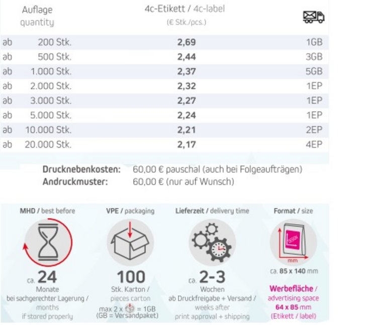 Dieser aromatische Früchtetee sorgt für wohlige Wärme an kalten Tagen. Die fruchtige Note von Orangenschalen kombiniert mit einer feinen Schärfe aus Ingwer und Chili macht ihn zum perfekten Begleiter für gemütliche Abende. Ein stimmungsvolles Werbemittel, das Genuss und Entspannung vermittelt – ideal als Giveaway in der Winterzeit.Inhalt: Kaminfeuer Tee: Hibiskusblüten, Ingwer, Hagebuttenschalen, Apfel, Karotten, Orangenschalen, natürliches Aroma, Lemongras, Kornblumenblüten, Chillies.Füllvarianten: Siehe Bilder. Artikelnummer bitte bei Bestellung mit angeben.Haltbarkeit: ca. 24 Monate bei sachgerechter LagerungNetto-Gewicht: ca. 20gVerpackungstyp: Mini-Standbeutel aus Kraft-PapierFormat: ca. 140 x 85 mmWerbefläche: 4c-Etikett B 74 x H 95 mmDruckart: 4c DigitalLieferzeit: ca. 10 Arbeitstage ab Druckfreigabe + VersandMindestmenge: 200 Stk