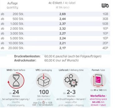 Preisliste Tee verschiedene Sorten 20g im Standbeutel Mini schwarz mit Logo Details