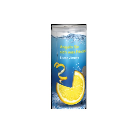 Nichts erfrischt und löscht den Durst an heißen Tagenbesser als ein ausgewogener Mix aus schwarzem Teeund frischen Zitronen. Hergestellt nach traditionellerRezeptur aus Schwarztee, Zitronensaft und Zucker.Erhältlich als Body-Label oder Full-Body-Variante sowieab 150.000 Stück im Direktdruck.