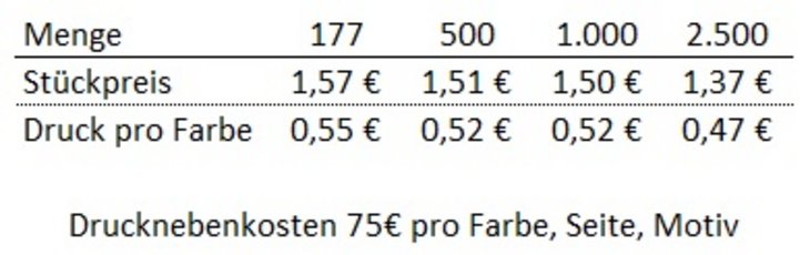Preisliste für Trinkflasche mit Druck oder Logo Details