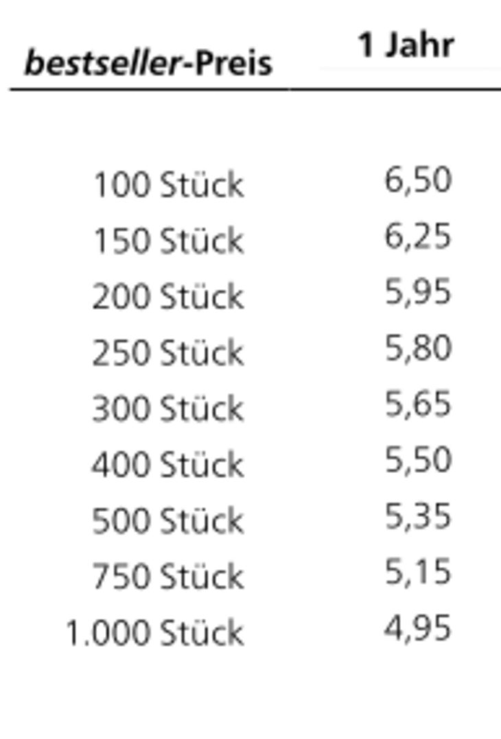 Preisliste Aufstellkalender Desktop 3 Color Bestseller 2 Jahre