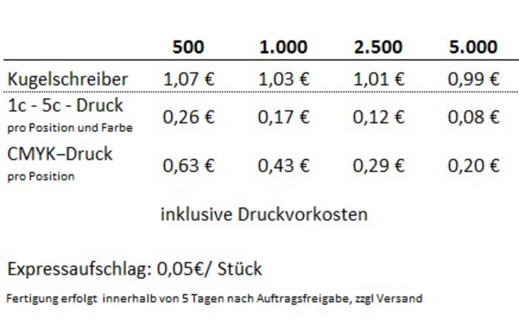 Preisliste Senator Kugelschreiber Bridge Soft Touch mit Logo