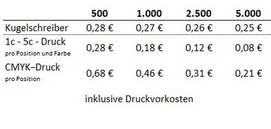 Preisliste Senator Kugelschreiber Dart Polished Basic mit Logo