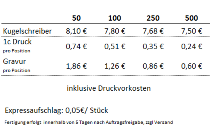 Preisliste Senator Kugelschreiber Image Black Line mit Logo
