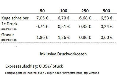 Preisliste Senator Kugelschreiber Image White Line mit Logo