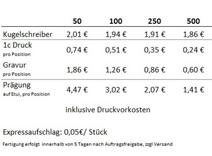 Preisliste Senator Kugelschreiber Polar mit Logo Details