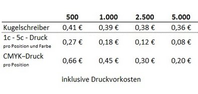 Preisliste Senator Kugelschreiber Super Hit Matt BIO mit Logo