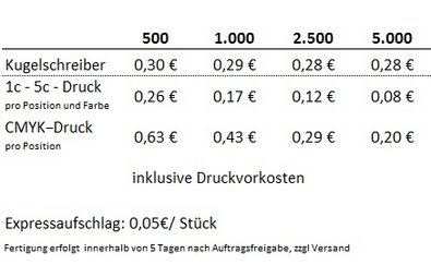 Preisliste Senator Kugelschreiber Super Hit Clear SG mit Logo
