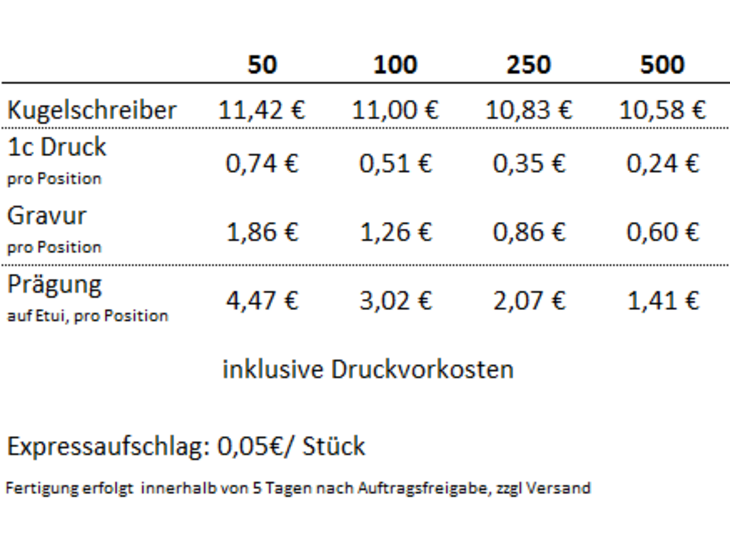 Preisliste Senator Kugelschreiber Tizio Rollerball mit Etui mit Logo