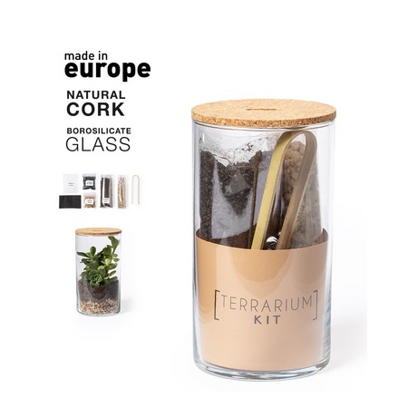 Terrarium mit Kakteensamen. In einer perfekten Kombination aus Design und Ökologie, enthält dieser Indoor-Garten alles, was Sie für den vertikalen Anbau benötigen. Hergestellt aus Borosilikatglas, bietet außergewöhnliche Beständigkeit, Ästhetik und Haltbarkeit. Mit Naturkork-Deckel für einfaches Branding und Substrat. Inklusive Pflanzanleitung und Bambuszange, mit Made in Europe-Logo.Artikelmaß: 14.8 x cm | 8.3 ØGewicht: 450gInhalt: KaktussamenDruckgröße: max.40 x 20mmMindestbestellmenge: 50 Stück