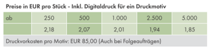 Handliche Dose - Große Werbefläche - Wachstumsdose Geliefert wird die Weißblech-Dose mit einer Auswahl an Samen und einer Substrattablette als Erde. Einfach Deckel öffnen, gießen und die Natur live erleben. Die Werbebanderole bietet viel Platz für Ihre individuelle Werbebotschaft und verleiht der Dose einen einmaligen Charakter. Maße: Höhe ca. 5,7 cm, Ø ca. 7,5 cmGewicht: ca. 112 gDruck: Digitaldruck, 4/0-c EuroskalaMindestbestellmenge: 250 StückMögliche Samensorten: Basilikum, Fichte, Gartenkresse, Gewürzpaprika, Glücksklee-Zwiebel (* Je nach Verfügbarkeit der Glücksklee-Zwiebeln), Kräutermischung, Margerite, Persischer Klee, Petersilie, Ringelblume, Schnittlauch, Sommerblumenmischung, Sonnenblume, Thymian, VergissmeinnichtLieferzeit: ca. 3-4 Wochen nach Druckfreigabe