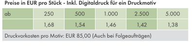 Preisliste Popup-Anzuchterde mit Logo Details