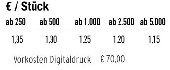 Beschreibung: Die natürlichen unbehandelten Hanffasern kommen hier als Wachstumsvlies zum Einsatz. Es wird keine Erde benötigt. Einfach die Kresse-Samen auf das angefeuchtete Vlies streuen und wachsen lassen. Im Pergaminbeutel sind das Naturvlies und die Samentüte ansprechend verpackt. Ihr Werbeeindruck in das Standardmotiv oder eine individuelle Gestaltung des Headers ist jeweils bereits ab 250 Stück möglich.Format: 90 x 160 x 5 mmGewicht: 14gSamen: KresseInhalt: Wachstumsvlies aus Hanffasern, Samen: KresseWerbefläche: 40x20 mm auf Standardmotiv HeaderWerbefläche Alternativ: 90x106 mm eigene Gestaltung HeaderMindestbestellmenge: 250 Stück