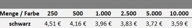Preisliste Druck