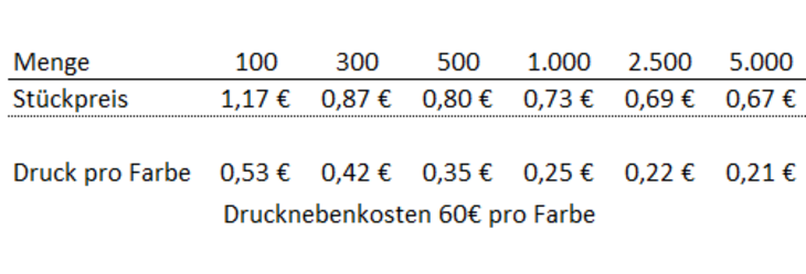 Maße: ca. 74 x 18 x 8 mmDruckart: TampondruckDruckfläche: 35x10 mm (max. 1c)Gewicht: 7gGrundfarben: weiß oder rotVerpackungseinheit: 1 je Polybeutel / 400 je VersandkartonLieferzeit: ca. 10 Arbeitstage nach DruckfreigabeMindetsbestellmenge: 100 Stück