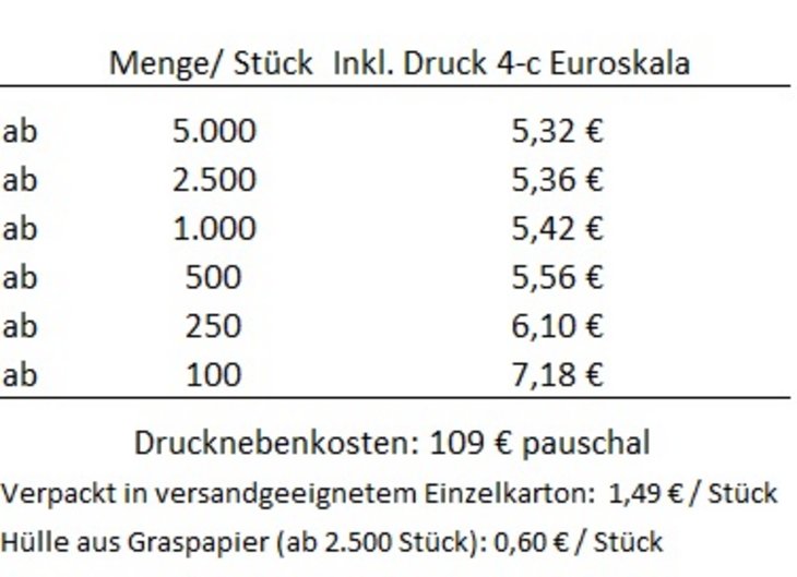 Süße Markenschokolade inside: Der individuelle Täfelchen Adventskalender bietet 24 Schokotäfelchen von der starken Marke Lindt und versüßt so garantiert die Vorweihnachtszeit! Bestehend aus FSC-zertifizierter Vollkartonhülle oder Graspapierhülle mit kompostierbarem Inlay für eine gelungene weihnachtliche Werbebotschaft.Bedruckung: 4-c-EuroskalaProduktbeschreibung: Adventskalender in Vollkartonhülle, wahlweise aus Graspapier, Inlay kompostierbar, wahlweise aus Papier, mit Lindt Schokotäfelchen, Hülle individuell bedruckt. Mit ausklappbarem Tischaufsteller und Aufhänger im Rücken integriertInhalt: 24 Lindt Schokotäfelchen aus feinster Milchschokolade in drei festlichen Farben, bunt gemischt, 124 gMotive: Comic- und Rätselmotive, Foto- und Kunstmotive - Sie haben die Wahl! Nutzen Sie eine von unseren Gestaltungsvorlagen, die alle nach Kundenwunsch verändert werden können. Oder Sie verwenden keine der Vorlagen und gestalten den Kalender komplett individuell.Haltbarkeit: Bis mindestens 31.03. des FolgejahresFormat: Ca. 210 x 210 x 14 mm, Großbriefformat Maße der Werbefläche bitte als Standzeichnung anfordernVerpackung: Kartons à 50 Stück, 2 Kartons im UmkartonLieferzeit: Ca. 14 - 16 Arbeitstage nach Freigabe des KorrekturabzugesMindestbestellung: Ab 100 Stück