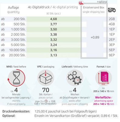 Verpackungstyp: Adventskalender im Versandkarton einzeln verpackt, Aufpreis 0,89 € / Stück