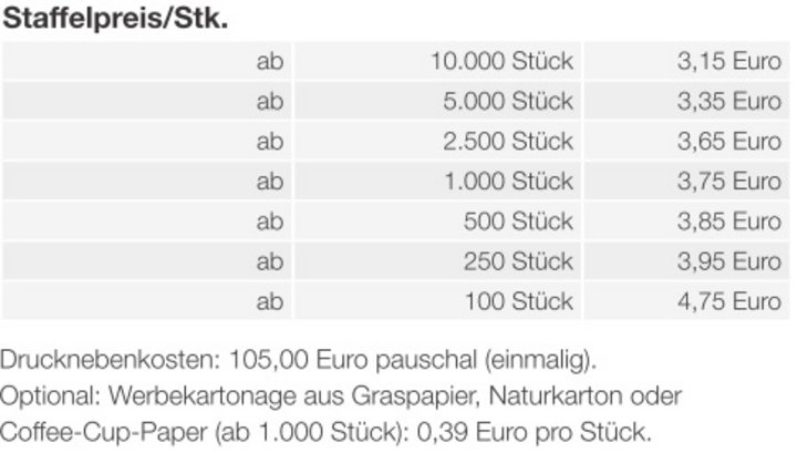 Geschenke für Genießer! Genussmomente zu verschenken, ist eine besondere Wertschätzung. Ostern ist die ideale Gelegenheit, Mitarbeiterinnen und Mitarbeitern und Ihrem Kundenkreis eine Freude zu bereiten.Produkt: Individuelle Präsentverpackung aus hochwertiger Kartonage mit süßer Füllung.Maße: ca. 165 x 62 x 62 mm.Nachhaltigkeit: Klimaneutrales Produkt, gefertigt auf FSC ® -zertifiziertem Karton aus nachhaltiger Forstwirtschaft.Bedruckung/Motive: 4-farbiger Druck auf grafischem Premium-Karton (FSC ® -zertifiziert). Optional auf Graspapier, Naturkarton oder Coffee-Cup-PaperInhalt: Schokoladenmischung von Lindt (ca. 60g), bestehend aus 10 Stück Schokoladen-Eiern und einem original Lindt GoldhasenHaltbarkeit: Bis mindestens 30.06. diesen JahresLieferezeit: ca. 15 Arbeitstage nach Druckfreigabe oder nach AbspracheZubehör: Gleich mitbestellen: Stabiler Einzelkarton für den Postversand an Ihre Kunden: 0,59 Euro pro Stück. Mindestbestellmenge: 100 Stück