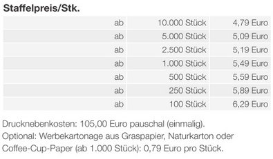 Die feine Schokoladenmischung mit zartschmelzender Lindt Schokolade lässt Genießerherzen höherschlagen. Die Verpackung ist komplett individuell bedruckbarProdukt: Exklusive Schokoladenmischung von Lindt, verpackt in einer individuellen WerbekartonageMaße: ca. 140 x 140 x 40 mmNachhaltigkeit: Für jede Bestellung mit uns wird ein Baum über GROW MY TREE gepflanzt. Wir verwenden FSC ® -zertifizierten Karton aus nachhaltiger Forstwirtschaft und anderen kontrollierten QuellenBedruckung/Motive: 4-farbiger Druck auf grafischem Premium-Karton (FSC ® -zertifiziert).Optional auf Graspapier, Naturkarton oder Coffee-Cup-PaperInhalt: Schokoladenmischung von Lindt (ca. 97g): 3 Lindor Pralinés mit einer zartschmelzenden Füllung, 10 Lindt Lindor Schokoladen-Eier bunt gemischt und 1 Lindt GoldhaseHaltbarkeit: Bis mindestens 30.06. diesen JahresLieferzeit: ca. 15 Arbeitstage nach Druckfreigabe.Mindestbestellmenge: 100 Stück