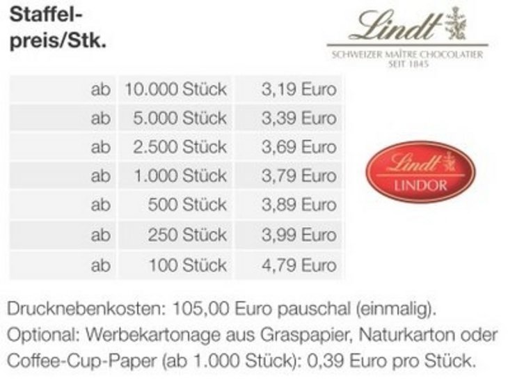 Preisliste 3D Präsent Container Ostern mit Lindt Schokoladenmischung mit Logo Details