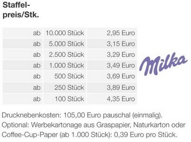 Preisliste 3D Präsent Container Ostern mit Milka Schokoladenmischung mit Logo Details