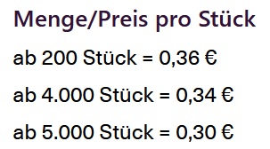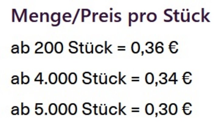 Einfach lecker und unschlagbar günstig: ein Butterkeks nach klassischer Art, verfeinert mit exquisiter Bourbonvanille und einfarbig mit Lebensmittelfarbe bedruckt. Jedes Gebäckstück wird aromasicher in Klarsichtfolie versiegelt. Der zartbuttrige Keksgeschmack mit köstlicher Vanillenote lässt Ihren Gruß buchstäblich auf der Zunge zergehen! Durch das Ostermotiv eignen sich die Kekse ideal als leckerer Gruß zum Kaffee. Es entstehen keine weiteren Druck- bzw. Druckvorkosten.Druckfläche: 35 x 30 mmProduktionseinheit: 200 StückMaße ohne Verpackung: ca. 42 x 50 x 6 mmMaße inkl. Verpackung: ca. 85 x 50 x 6 mmGewicht ohne Verpackung: 10 gGewicht inkl. Verpackung: ca. 10 gHaltbarkeit: 12 MonateIndividualisierung: 1-farbiger Druck mit brauner Lebensmittelfarbe direkt auf den ButterkeksMindestbestellmenge: 200 Stück